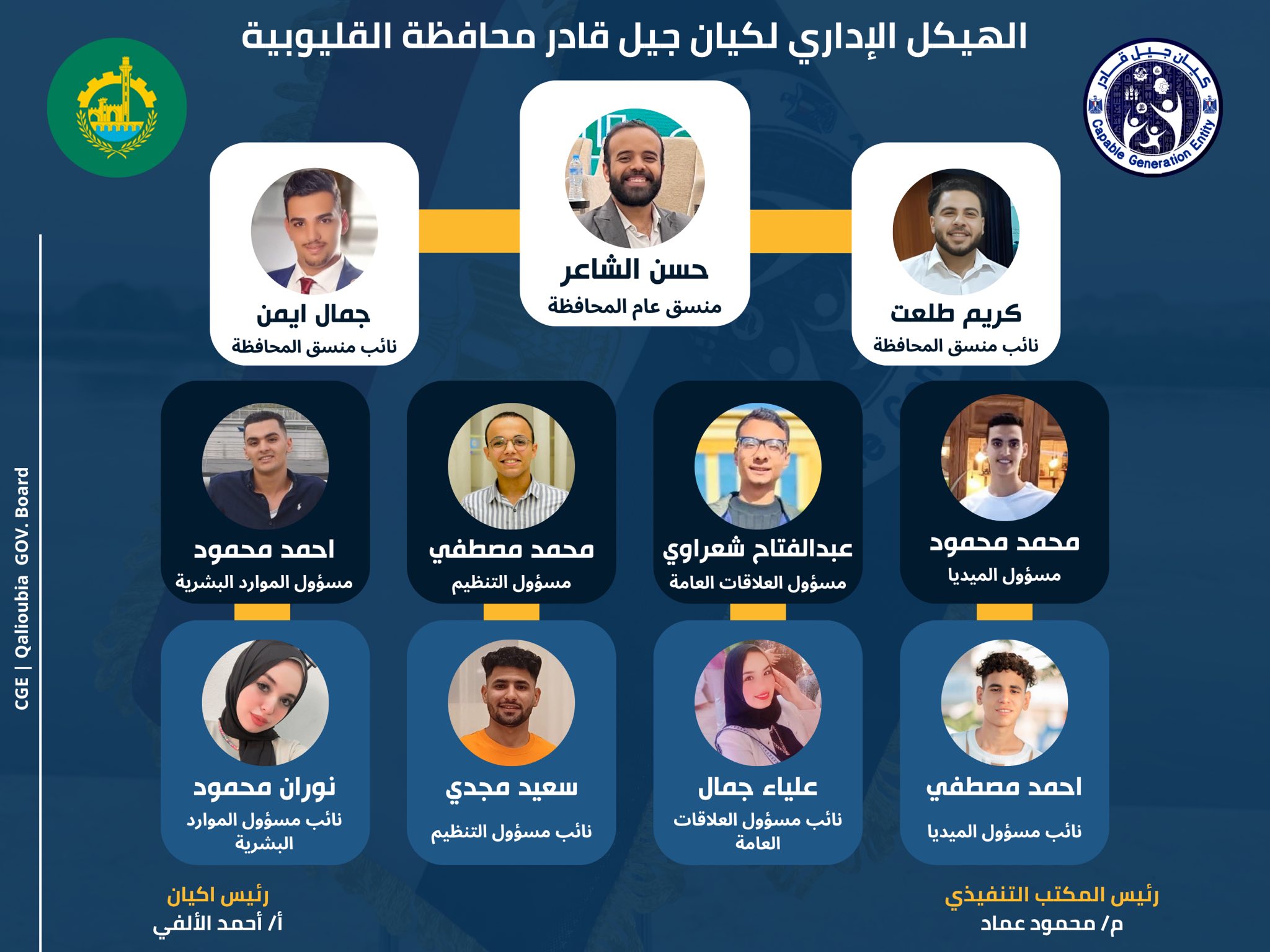 اعتمد الأستاذ أحمد الألفي –رئيس كيان جيل قادر – التشكيل الإداري لمحافظة القليوبية،
